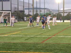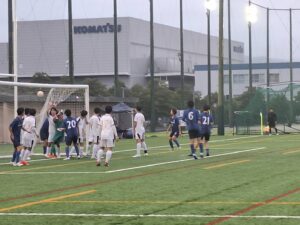 関西外語大中宮Gにて雨中の熱戦!5-0で完勝、プレーオフ決定!